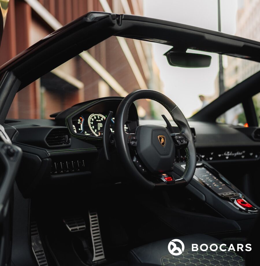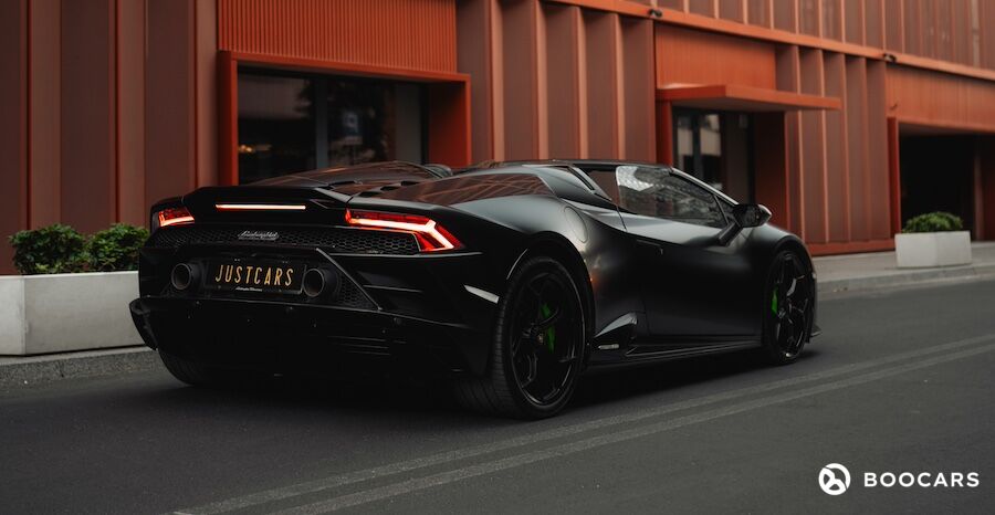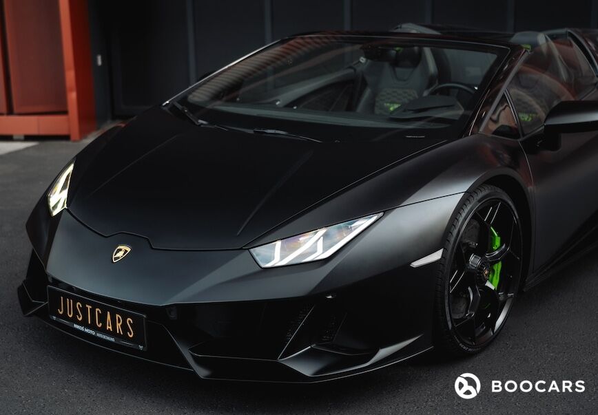Lamborghini Huracan Evo Spyder to połączenie ekstremalnej wydajności i luksusowego komfortu. Wnętrze tego super samochodu zostało zaprojektowane z myślą o zapewnieniu niezrównanej wygody. Wykończone najwyższej jakości materiałami, takimi jak skóra Alcantara i karbonowe detale, wnętrze emanuje sportowym luksusem. Lamborghini Huracan Evo Spyder to prawdziwa bestia na drodze. Wyposażony w potężny, 5.2-litrowy silnik V10 o mocy 640 KM, przyspiesza od 0 do 100 km/h w zaledwie 2,9 sekundy. Maksymalna prędkość wynosząca 325 km/h zapewnia niezrównane wrażenia z jazdy. Lamborghini Huracan Evo Spyder w kolorze czarny mat to definicja niepowtarzalnego stylu i elegancji. Matowe wykończenie nadwozia podkreśla agresywne linie i dynamiczną sylwetkę pojazdu, nadając mu jeszcze bardziej drapieżny wygląd. Charakterystyczne wloty powietrza, ostre krawędzie i aerodynamiczne kształty sprawiają, że Huracan Evo Spyder przyciąga wzrok z każdej perspektywy. Składany dach pozwala cieszyć się jazdą na świeżym powietrzu w zaledwie kilka sekund, a nowoczesne reflektory LED oraz stylowe tylne światła nadają pojazdowi nowoczesny i wyrazisty wygląd. Stylowe felgi w kolorze czarnym mat oraz charakterystyczne logo Lamborghini podkreślają prestiżowy charakter tego modelu.