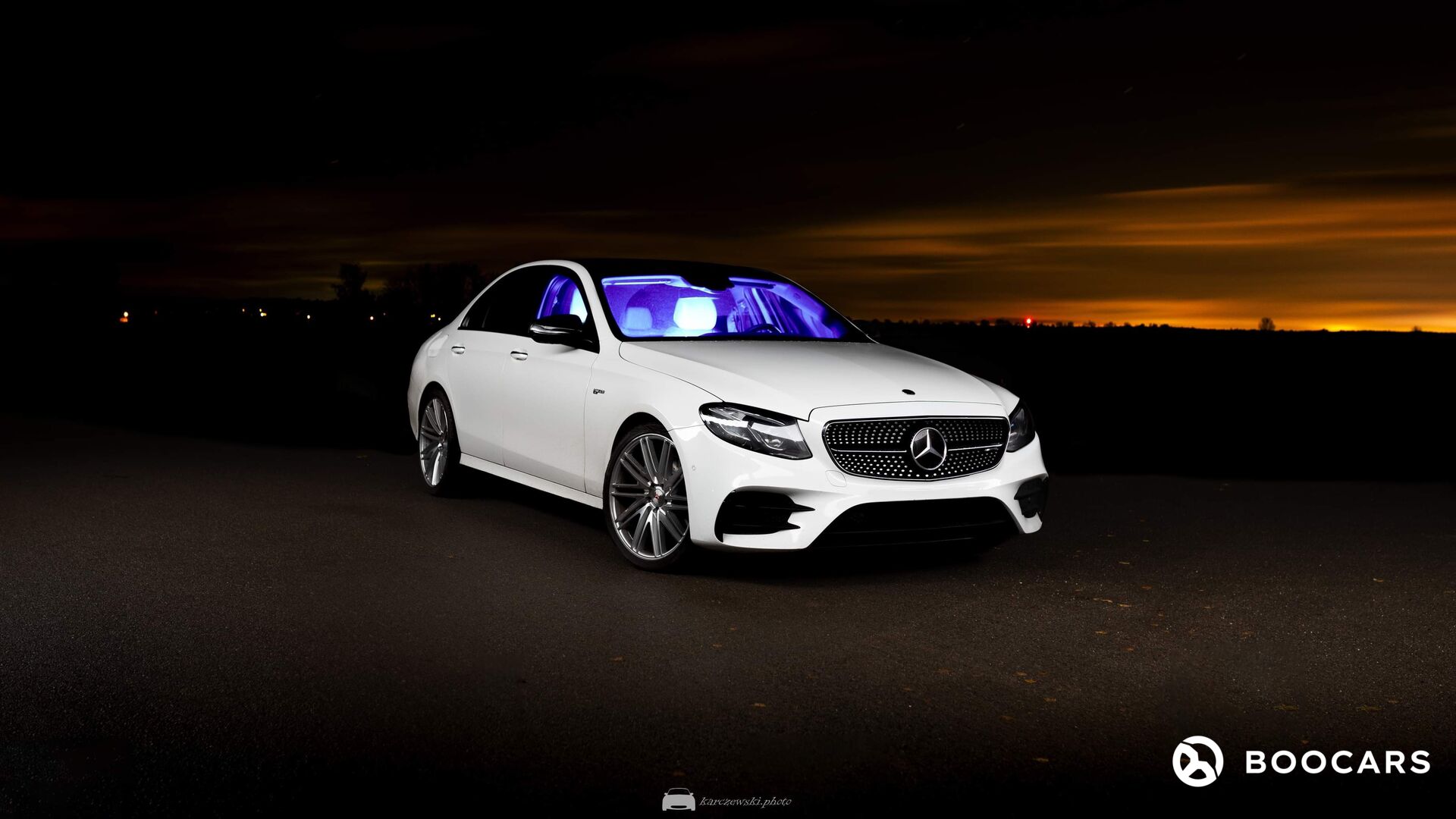 Mercedes E43 AMG. Jest to sedan z silnikiem 3.0 biturbo o mocy 401 koni, zapewniający zarówno wygodną, jak i emocjonalną podróż. Mercedes z zewnątrz i wewnątrz został skonfigurowany w kontrastowym stylu bieli z czernią, dzięki czemu przykuwa uwagę przechodniów, jak również pasażerów. Po więcej informacji zapraszamy do rezerwacji