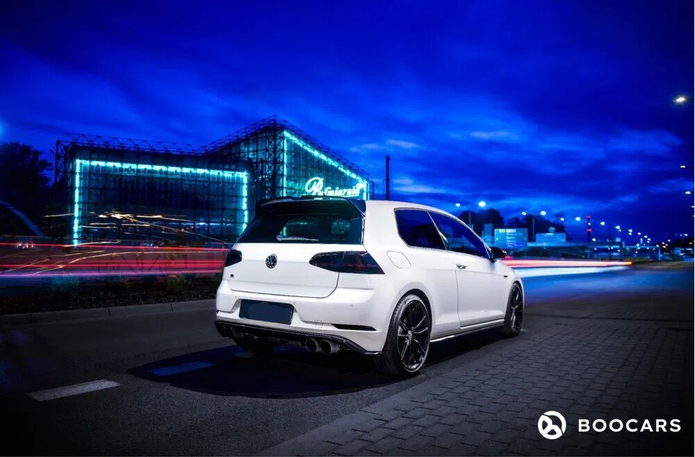 Wyposażony w większą moc, nowe elementy wyposażenia i najnowocześniejszą inteligentną technologię VW GOLF 7,5R został stworzony z myślą o maksymalnej przyjemności z jazdy. To idealny samochód sportowy do użytku na co dzień. Nasz Golf posiada zmodyfikowany silnik o mocy 380 km, a co najważniejsze 540 Nm! Wynikiem podniesienia mocy oraz napędu na cztery koła auto osiąga sektę w niecałe 4 sekundy! Niemiecki kompakt, który nie ma wielu godnych rywali. Zmodyfikowany został również wydech, który brzmi obłędnie i zapewnia efekt „popcornu”. Przy wydechu warto również zwrócić uwagę na najwyższej jakości tytanowe końcówki. Poza modyfikacjami jednostki napędowej i wydechu, nasz Golf 7,5R wyróżnia się również wyglądem. Kolor białej perły i czarne dodatki takie jak przyciemnione lampy przednie i tylne oraz 19-calowe felgi w czarnym połysku czynią ten samochód wyjątkowym i zdradzają jego sportowy charakter.